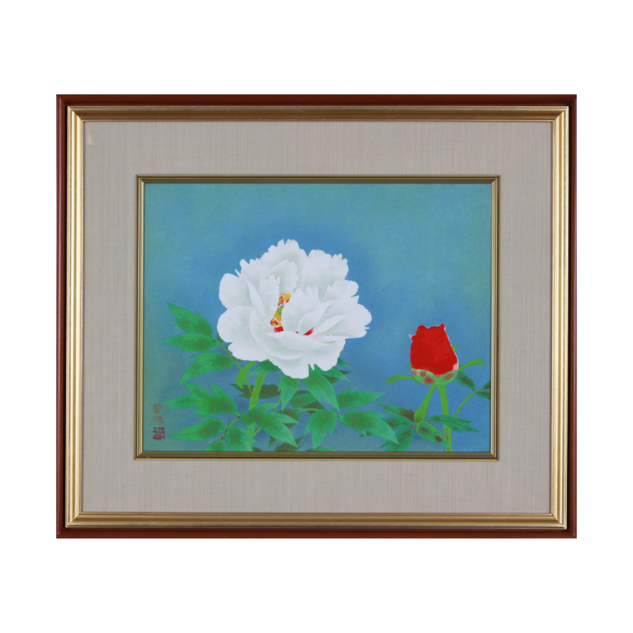 山口華楊 「紅白牡丹」 文化勲章 巨匠 額装 北野美術館蔵 手刷木版画 山口華楊 「紅白牡丹」 文化勲章 巨匠 額装 北野美術館蔵 手刷木版画